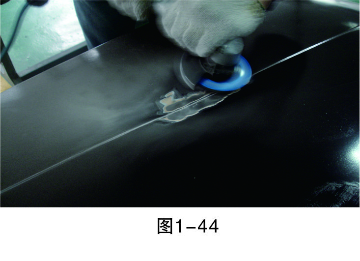 步驟3(除漆):打磨漆層,至板件金屬裸露后進行清潔,然后再進行鈑金作業(yè),如圖1-44所示。