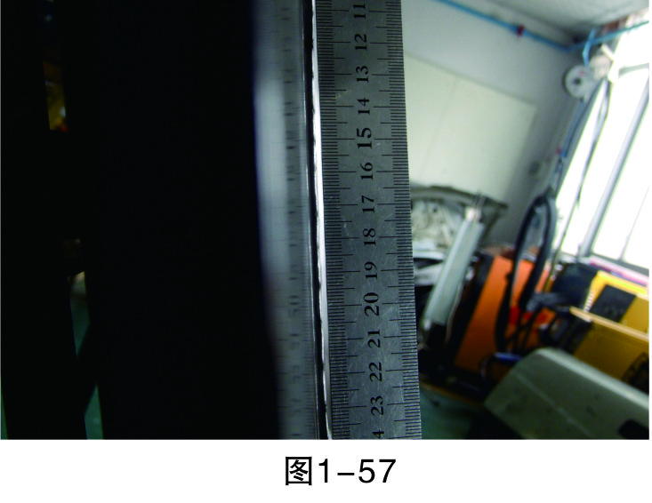 步驟16(檢查修復效果):用直尺測量修復平面與完好平面是否在同一平面上。如圖1-57所示,修復平面與完好平面還有一定的誤差。