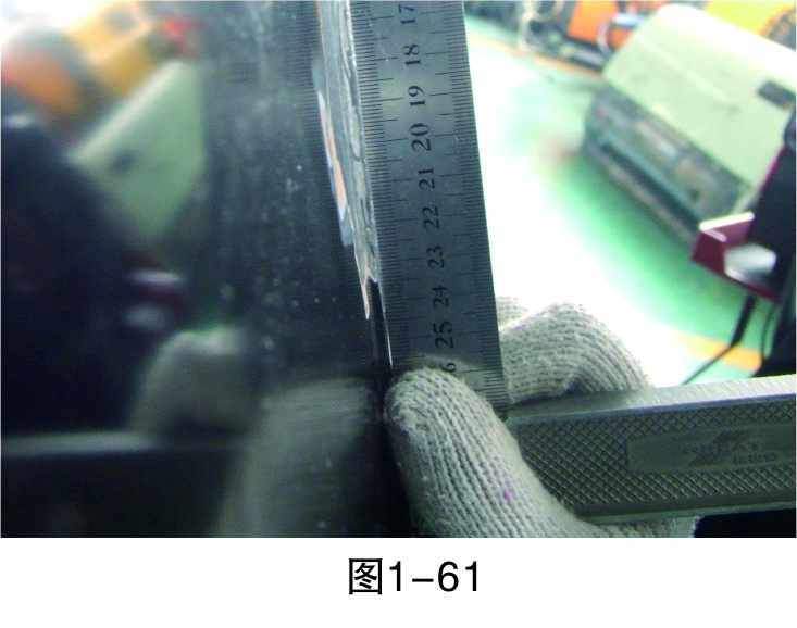 步驟20(測量):對修復平面進行測量,檢查是否在同一水平線上,如果是就可結(jié)束鈑金修復作業(yè),否則重復前面步驟直至修復完成,如圖1-61所示。