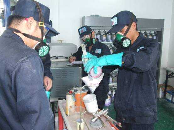 老師們進(jìn)行調(diào)配底漆