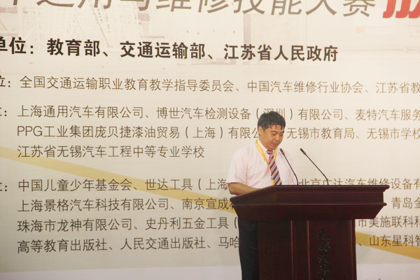 6月20日上午,2013年全國職業(yè)院校技能大賽中職組“雪佛蘭杯”汽車運用與維修技能大賽開幕式在無錫汽車工程中等專業(yè)學校體育館舉行。交通運輸部道路運輸司王水平副司長、江蘇省教育廳楊湘寧副廳長、無錫市人民政府華博雅副市長、大賽主贊助商——上海通用汽車有限公司黨委書記黃強出席開幕式并致辭。裁判員代表洪永楠、參賽選手代表何宇先后宣誓。大賽開幕式由國家教育部職成教司農(nóng)村教育處劉杰處長主持。