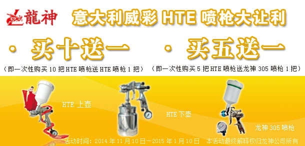 2、買五送一(即一次購(gòu)買五把HTE噴槍送一把龍神305噴槍)
